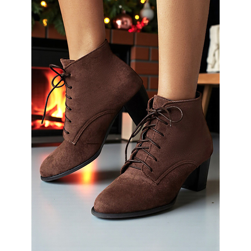 Women's Brown Suede Lace-Up Ankle Boots with Block Heel – Vintage-Inspired Style, Perfect for Fall, Winter, and Daily Outings