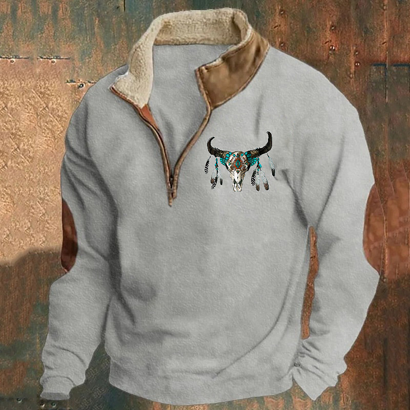Men's Cattle Sweatshirt Sweatshirt Sweatshirt Stand Collar Daily Print Streetwear Zip Up Fall Winter