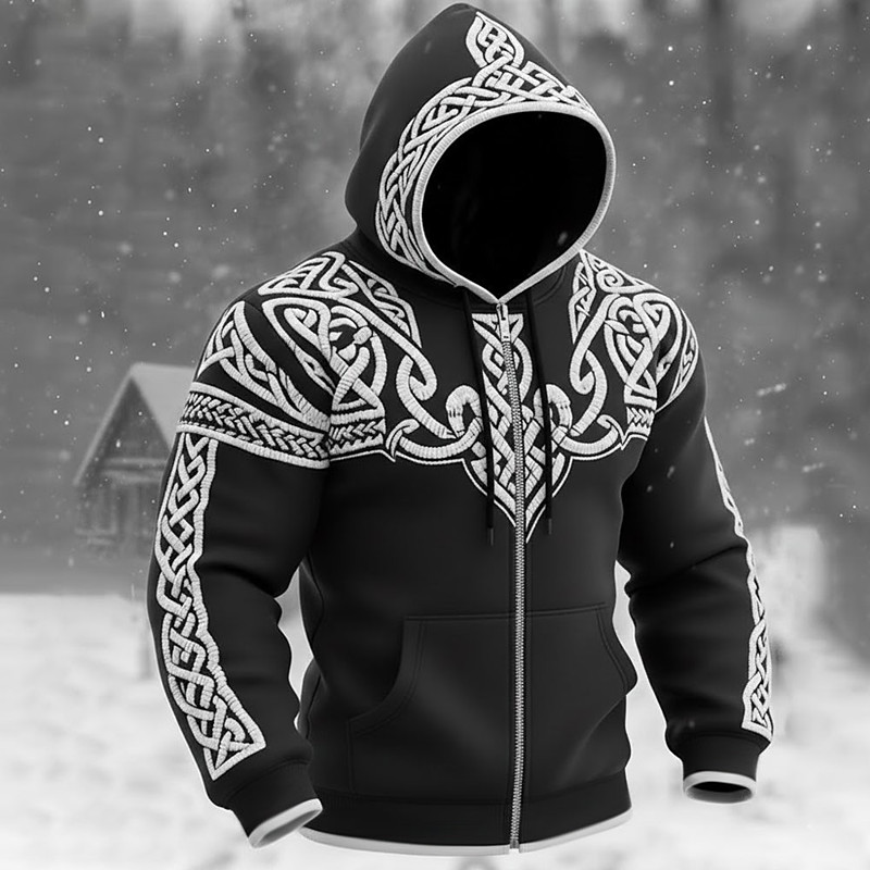 Men's Optical Illusion 3D Print Celtics Hoodie Jacket Sweatshirt Viking Fantasy All Over Print Long Sleeve Zip Streetwear Vacation Going out Blue Black Yellow Zipper Fall Winter Designer S M L XL XXL