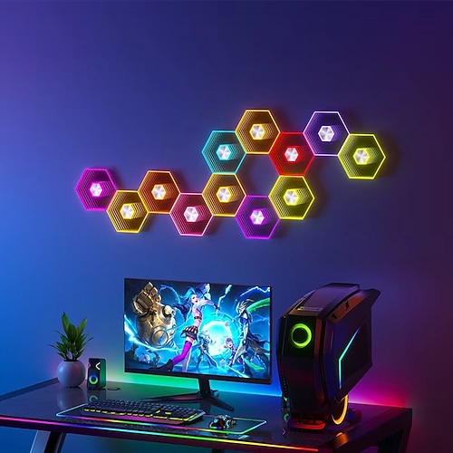 6/8/10/12/24 pezzi di luci a nido d'ape esagonali, pannelli da parete a LED attivati dal suono, luce RGB modulare fai da te, controllo tramite app Bluetooth, sala giochi, camera da letto, arredamento