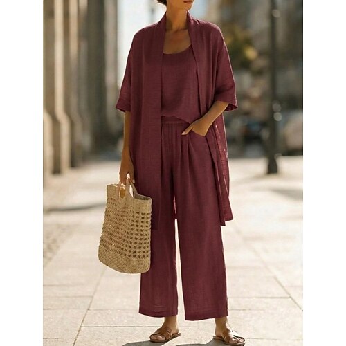 Per donna Set di Pantaloni Finto cotone e lino Manica Corta Girocollo Tinta unica Moda Streetwear Casuale Quotidiano All'aperto Blu Nero Bianco Primavera Estate Vestibilità comoda