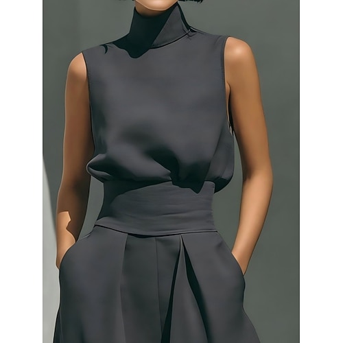 Per donna Set di Pantaloni Finto cotone e lino Senza Maniche Dolcevita Semplice Moda Streetwear Casuale Quotidiano All'aperto Blu Nero Verde militare Primavera Estate Vestibilità comoda