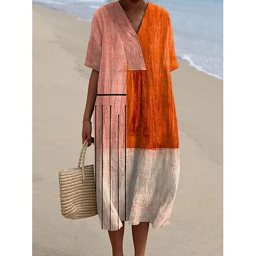 Per donna Abito Midi Vestito Estivo Vacanza Casual Spiaggia Spiaggia Feste Vestibilità comoda Grafico Geometrico Astratto Manica Corta Scollo a V blu navy Rosso Arancione Grigio chiaro Estate
