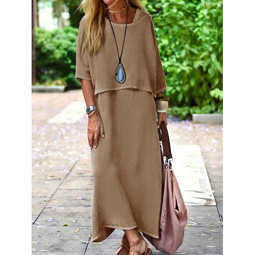 Per donna Abito Midi Abito a Tubino Abiti in cotone e lino Vestito Casual Abito estivo in cotone Essenziale Moderno Quotidiano Weekend Vestibilità comoda Semplice Mezza Manica Girocollo Verde