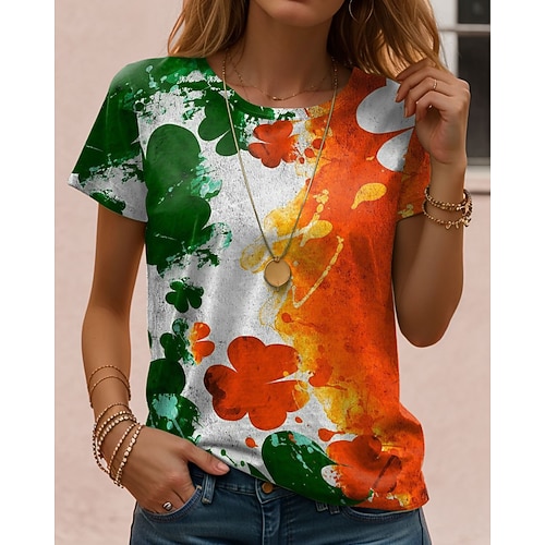 Maglietta da donna di San Patrizio T-Shirt Tie Dye Shamrock Bandiera Irlandese Moda Maniche Corte Collo a Giro Regolari Tops Stampa Quotidiana Weekend Rosso Blu Viola Verde Estate