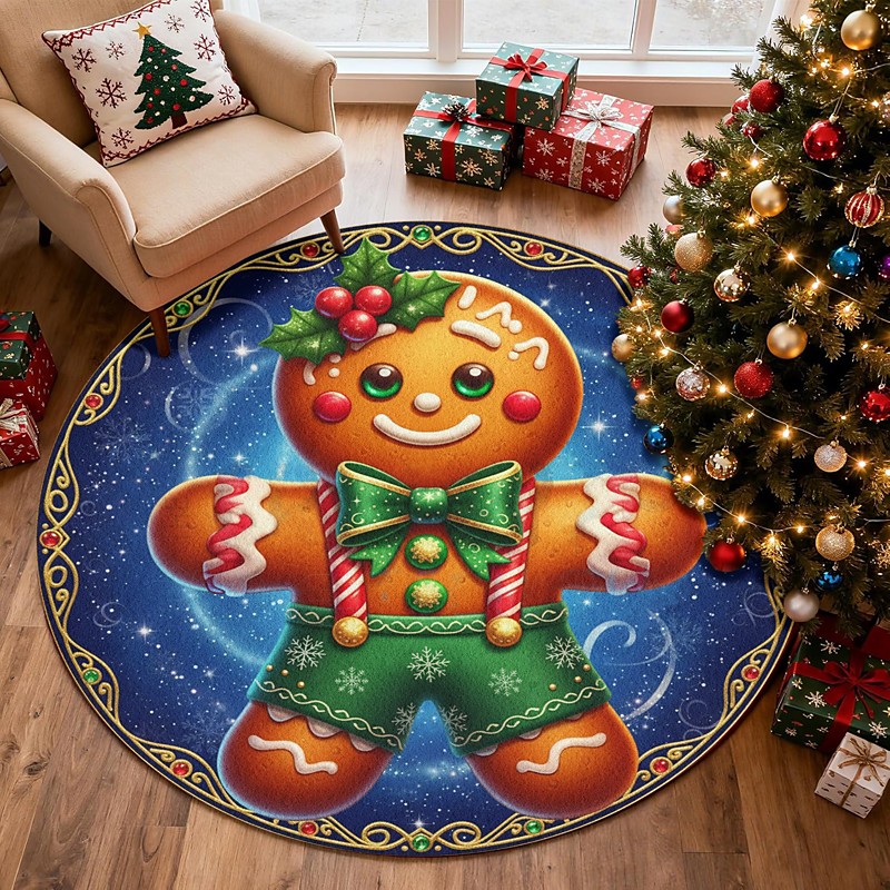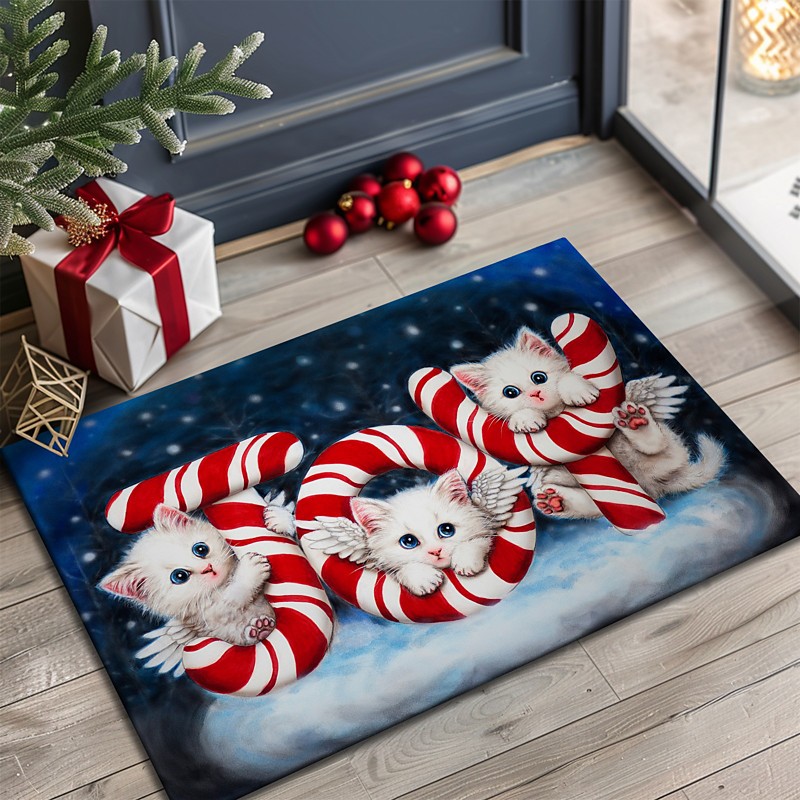 Christmas Doormat For Entryway Soft Non-Slip Machine Washable Faux Cashmere Front Door Mat Cute Cats Festive Entryway Rug, GingerbreadSleigh and GingerbreadHouse by Kayomi Harai