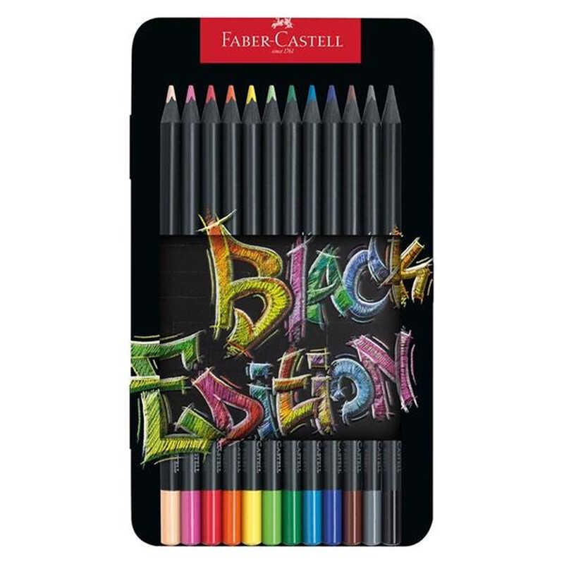 FABER-CASTELL Crayons de Couleur Black Edition 12 Pièces en Boîte Métal