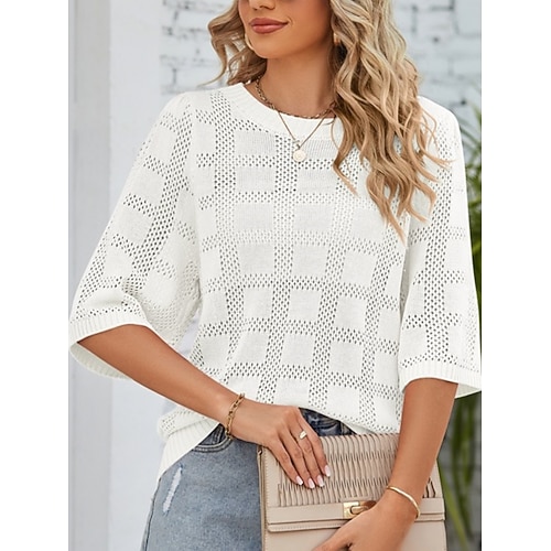 Per donna Felpa Informale Morbido Colore puro A coste Girocollo Lavorato a maglia Manica a 3/4 Top regolari Maglia Esterno Giornaliero Fine settimana Bianco Rosa Primavera Autunno