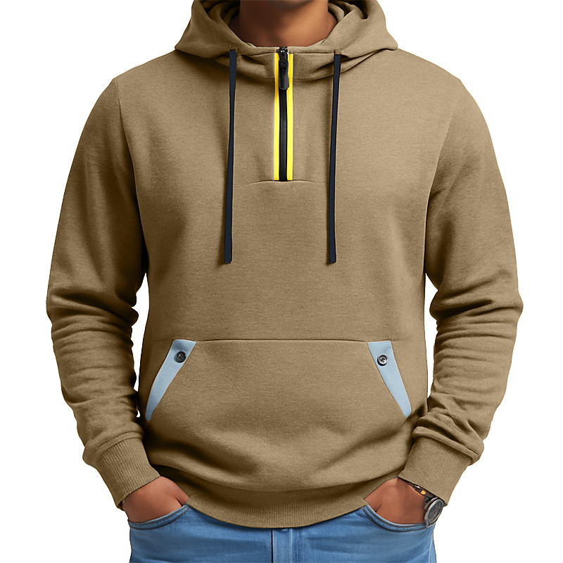 Men's Sweatshirt Corduroy Pullover Hoodie Sweatshirt Pullover Button Up Hoodie Black Army Green Burgundy Light Grey Dark Gray Standing Collar Plain Patchwork Color Block Sports Outdoor Casual Daily