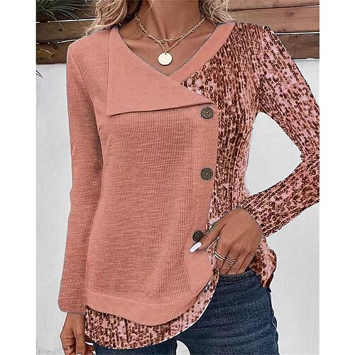 Per donna Maglietta Geometrico Astratto Quotidiano Essenziale Manica Lunga Collo di pile Scollo a V Top Regolari Casuale Weekend Bottoni Stampato Rosso Blu marino Blu Azzurro cielo Verde Autunno