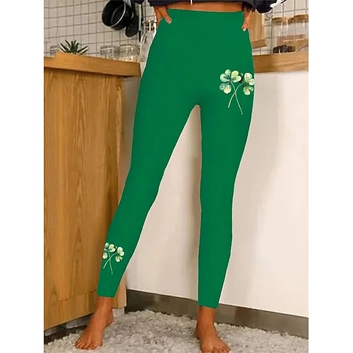 Damen Leggings Urlaub Lässig Volle Länge Hohe TaillePantsSt. Patrick Tag Grafik Farbverlauf Kleeblatt Komfort Weich Bequem Dehnbar Täglich Outdoor Urlaub Schwarz Grün aschgrau Sommer Frühling Herbst