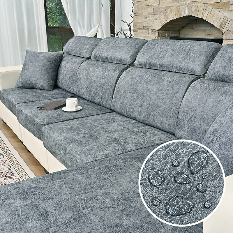 Waterproof Matte PU Faux Leather Sofa Seat Cover Stretchable Full Coverage Slipcover Durable Elastic Couch Protector for Living Room Furniture Seat Protector