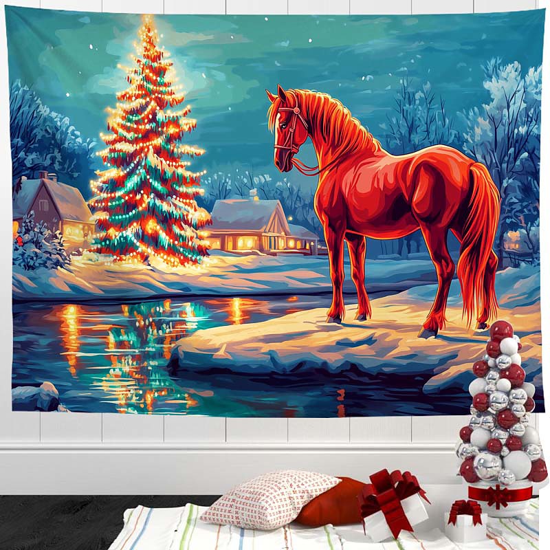 Christmas Tapestry – Festive Holiday Wall Hanging, Santa Snowflake Christmas Tree Winter Wonderland Decorative Tapestry for Home Bedroom Living Room Decoration