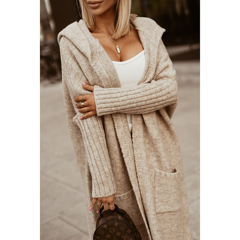 Women's Sweater Cardigan Elegant Fashion Streetwear Letter Hooded Pocket Knitted Long Sleeve Long Tops Knit Outdoor Daily Weekend White Pink Fall Winter