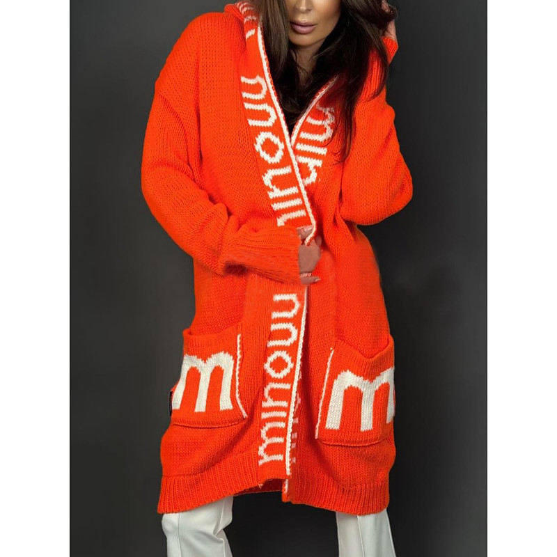 Women's Sweater Cardigan Elegant Fashion Streetwear Letter Hooded Pocket Knitted Long Sleeve Long Tops Knit Outdoor Daily Weekend Black Orange Spring Fall
