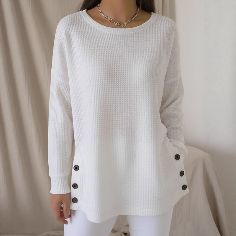 Women's Shirt Elegant Vintage Sports Long Sleeve Crew Neck Long Tops Daily Holiday Going out Buttons White Red Blue Spring Fall Winter