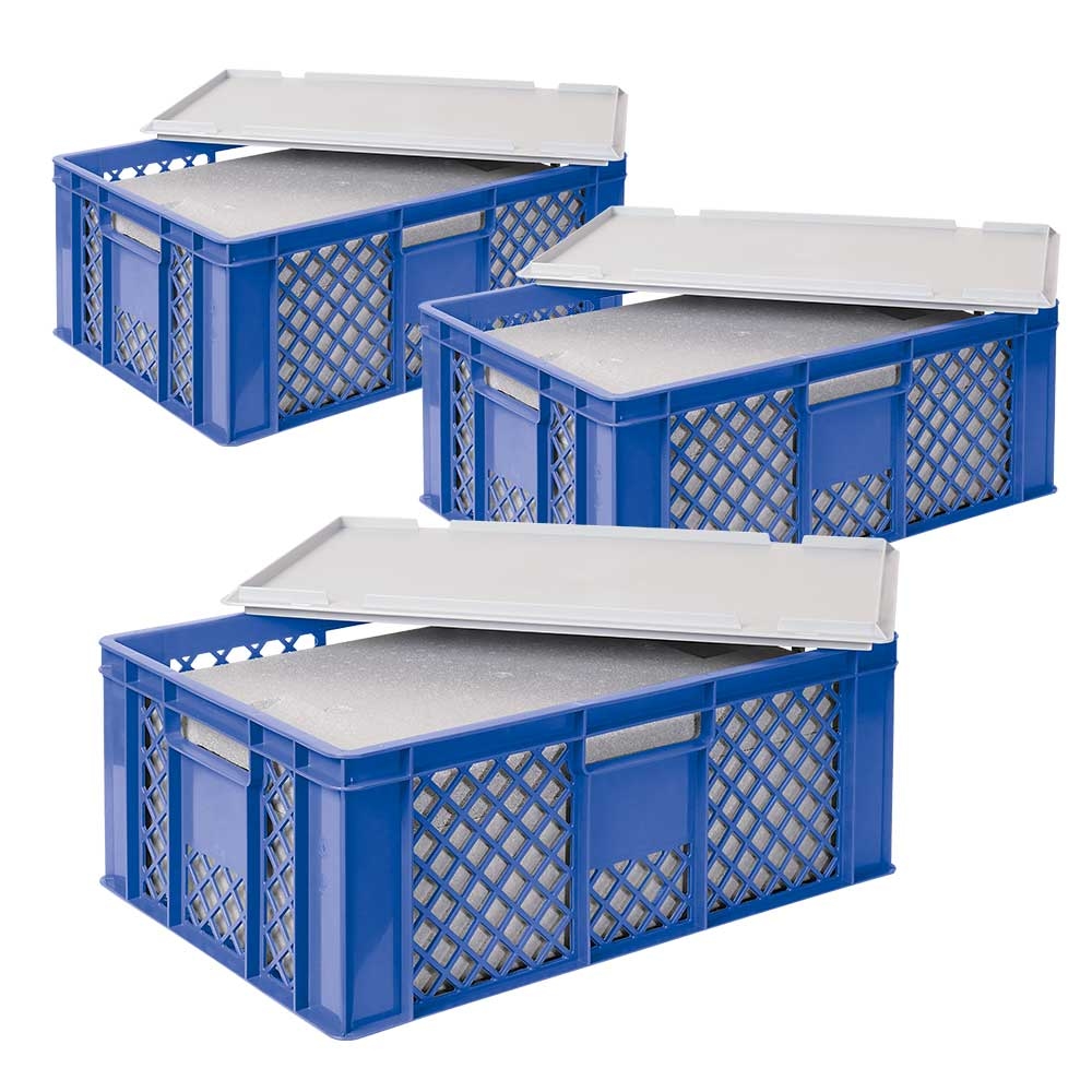 BRB 3x EPS Thermobox in Stapelkorb mit Deckel, LxBxH 600x400x240 mm, blau
