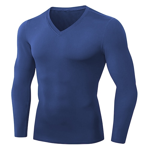 Per uomo Maglia a compressione Maglia da corsa Manica Lunga Maglietta Sportivo Athleisure Autunno Scollo a V Tinta unita Spandex Pile Calore Termico Asciugatura Rapida Morbido Traspirante Allenamento