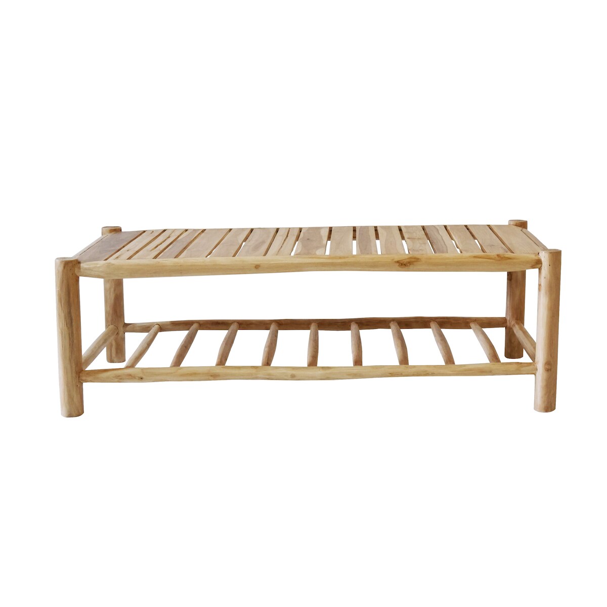 Möbilia Couchtisch | aus Teakholz | mit 2 Ablagen | natur | B 140 x T 70 x H 45 cm | 11020032 | Serie GARTEN