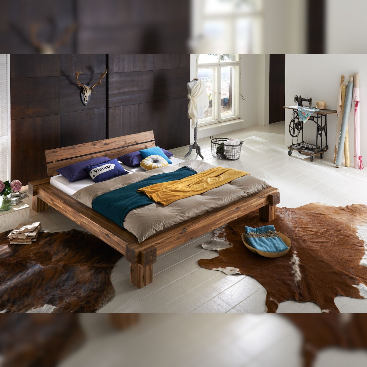 SAM® Massivholzbett Balkenbett 200 x 200 cm aus Akazie ELKE