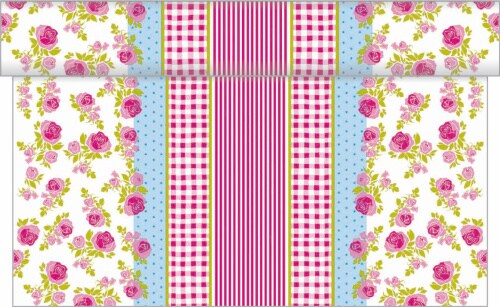 Sovie HOME Tischläufer Mary in Rosa aus Linclass® Airlaid 40 cm x 4,80 m, 1 Stück - Karo Punkte Rosen Streifen
