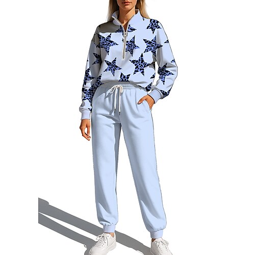 Damen Sweatshirt Trainingsanzug Jogginganzug Kordelzug Reißverschluss Geometrisch Jacke und Jogginghose Sportbekleidungsset Frühling Herbst Winter Rosa Blau Leger Training Outdoor Weich Ausgebeult