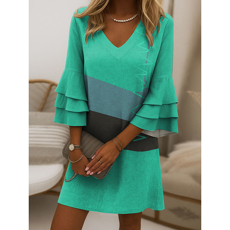 Women's Casual Dress Graphic Geometric Ruffle Print V Neck Flared Sleeve Mini Dress Bohemia Stylish Vacation Daily 3/4 Length Sleeve Summer Spring