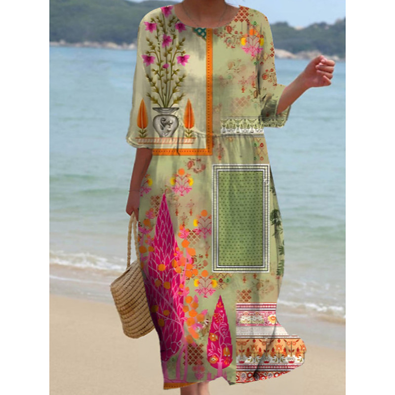 Women's Midi Dress Casual Dress Print Dress Fashion Modern Daily Beach Weekend Regular Fit Floral 3/4 Length Sleeve Crew Neck Light Green Blue Purple Green Spring Fall Autumn