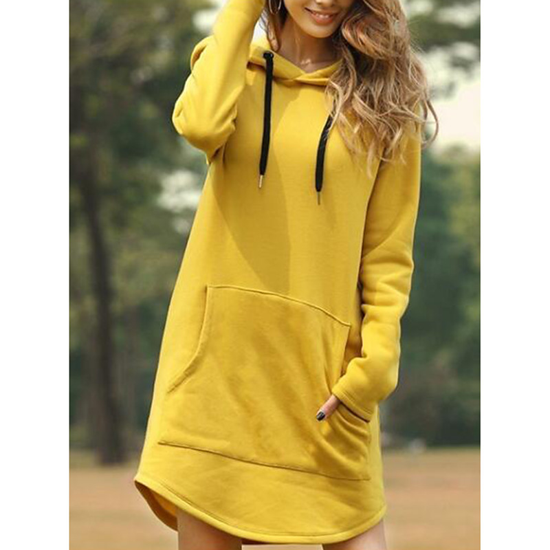 Women's Mini Dress Hoodie Dress Fashion Modern Vacation Daily Going out Regular Fit Plain Long Sleeve Hooded Black Yellow Red Blue Spring Fall