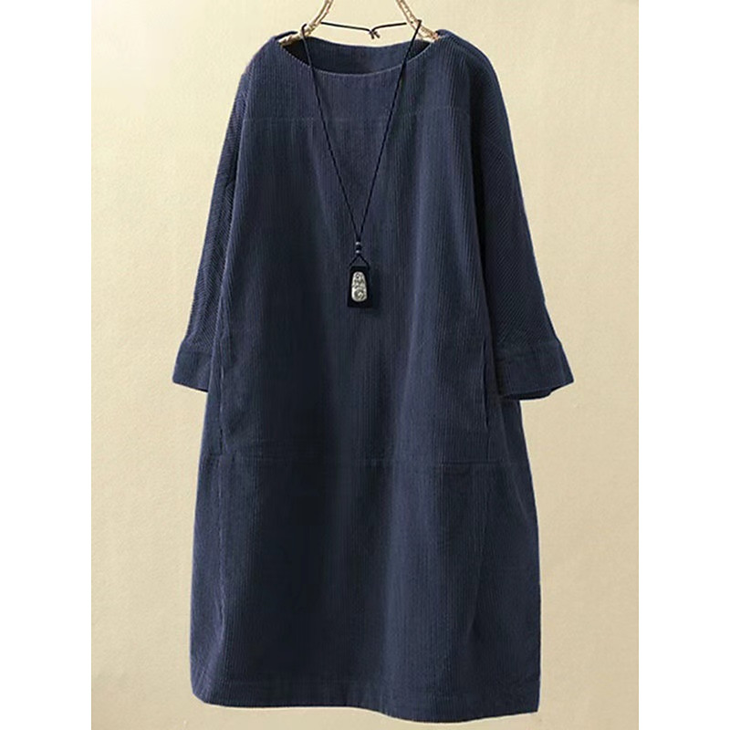 Women's Midi Dress Shift Dress Casual Daily Regular Fit Plain 3/4 Length Sleeve Crew Neck Navy Blue Orange Brown Green Spring Fall Winter