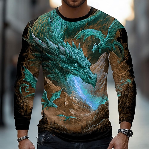 Herren Drache T Shirt Langarm T-Shirt 3D-Druck Rundhalsausschnitt Hemd Mode Übertrieben Straße Lässig Blau Ganzjahres Bekleidung S M L XL XXL XXXL