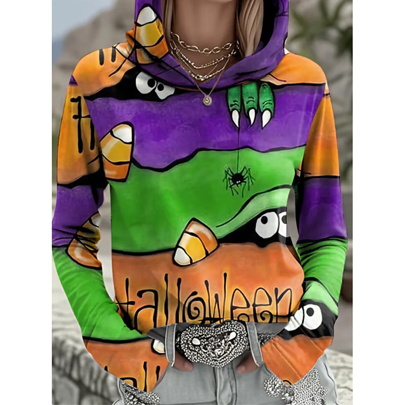 Damen Pullover Hoodie Sweatshirt Monster Grafik Totenkopf Mode Lässig Druck Langarm Kapuze Straße Alltag Lässiger Zugband Druck Schwarz Rot Lila Orange Grün Herbst Winter
