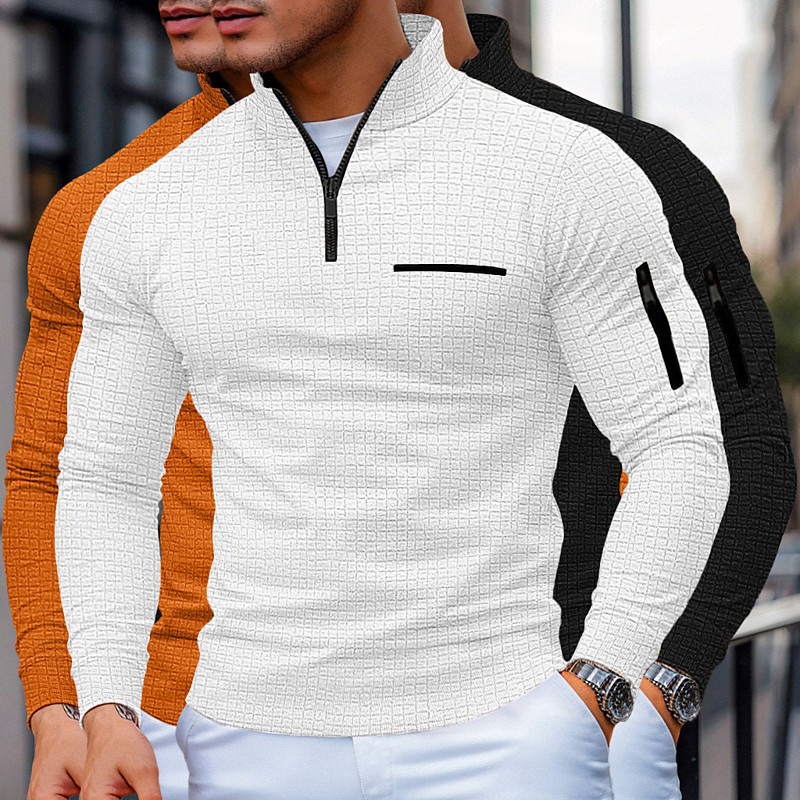 Men's Waffle Polo Shirts Pullover Sports Outdoor Casual High Neck Quarter Zip Long Sleeve Fashion Comfortable Color Block Textured 3-Piece Spring Fall Cross-Seasons All Seasons Slim 1# 2# 3# 4
