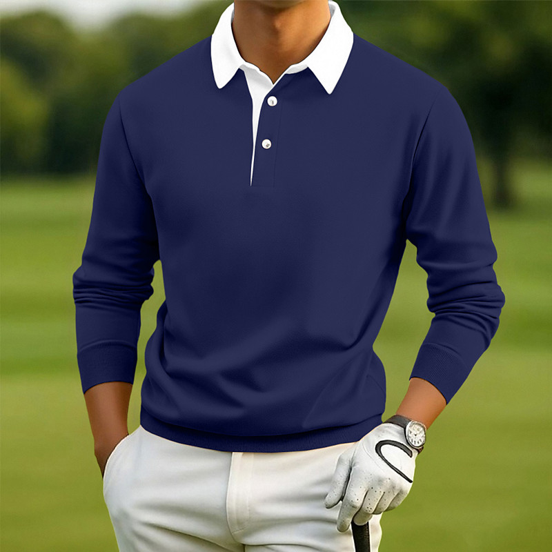 Men's Polo Shirts Golf Polos Shirts Business Casual Lapel Classic Long Sleeve Fashion Basic Solid Color Pocket Color Block Fall Winter Regular Fit Dark Brown Black Pink Yellow Dark Blue Gray Polo