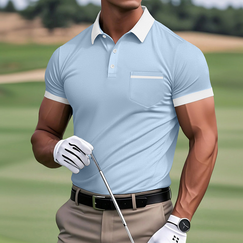 Men's Golf Shirt Pique Polo Shirt Work Casual Lapel Ribbed Polo Collar Short Sleeve Basic Modern Color Block Pocket Summer Spring Regular Fit Black White Light Blue Dark Blue Golf Shirt