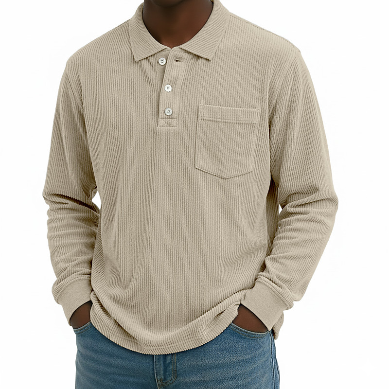 Men's Polo Corduroy Shirt Casual Sports Lapel Long Sleeve Fashion Basic Color Block Textured Buttons Warm Fall Winter Regular Fit Black Dark Blue Green Light Blue Khaki Polo