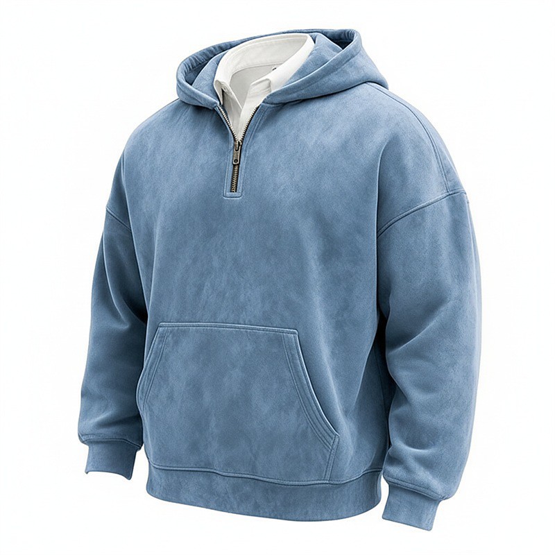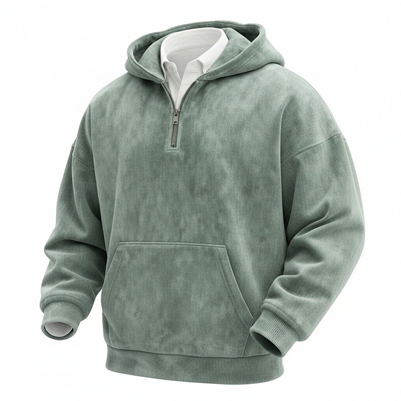 Men's Hoodie Pullover Hoodie Sweatshirt Quarter Zip Hoodie Apricot Black Light Green Red Navy Blue Hooded Plain Kangaroo Pocket Sports Outdoor Casual Daily Streetwear Cool Basic Spring Fall
