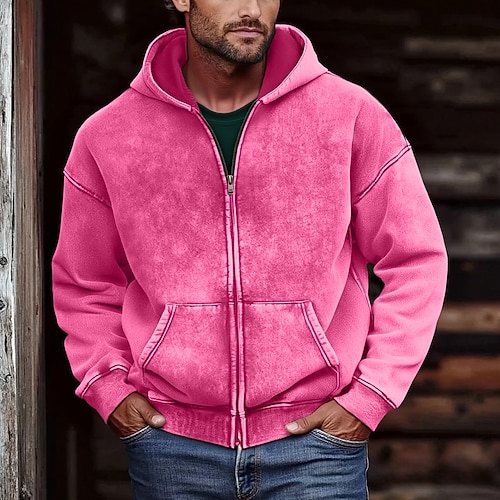 Per uomo Felpa con cappuccio Felpa con cappuccio a zip intera Felpa con cappuccio e zip Felpa con cappuccio invecchiata Nero Rosa Blu Reale Con Cappuccio Semplice Cerniera Tasca Casuale Quotidiano