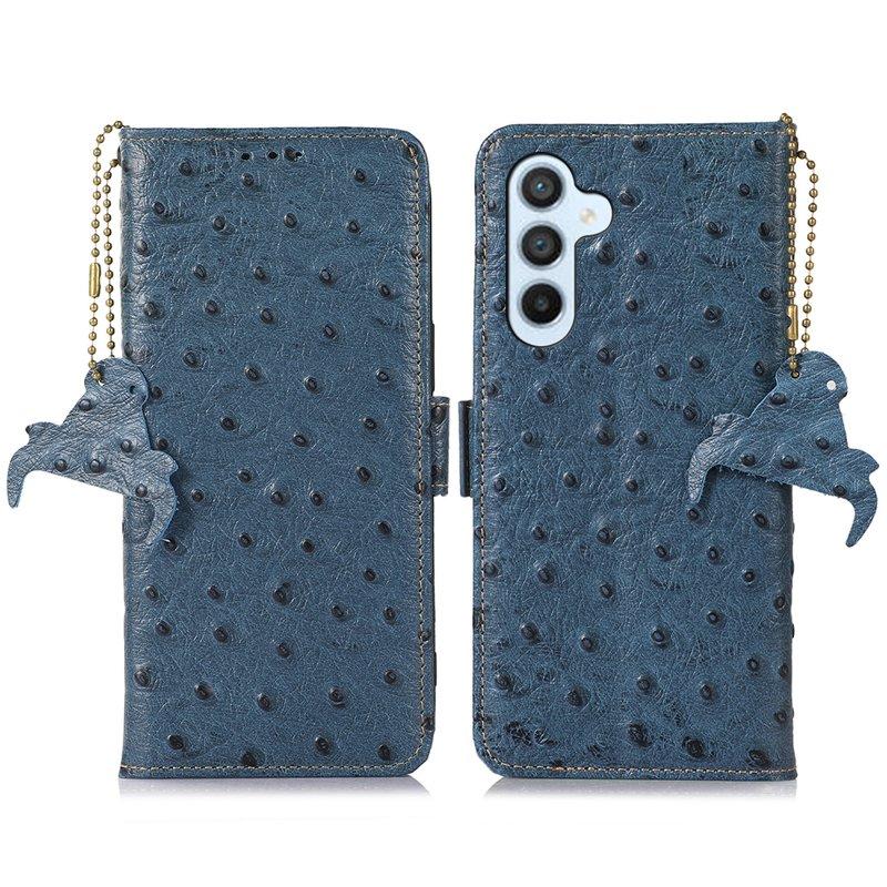 Samsung Galaxy A55 5G Plånboksfodral Äkta Läder RFID Skydd - Blå