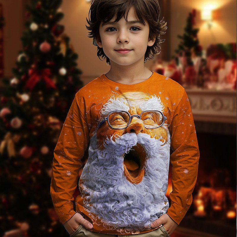 Christmas Boys' 3D Graphic Santa Claus T shirt Tee Long Sleeve Spring Fall Fashion Basic Kids 4-12 Years Crew Neck Outdoor Casual Daily Regular Fit