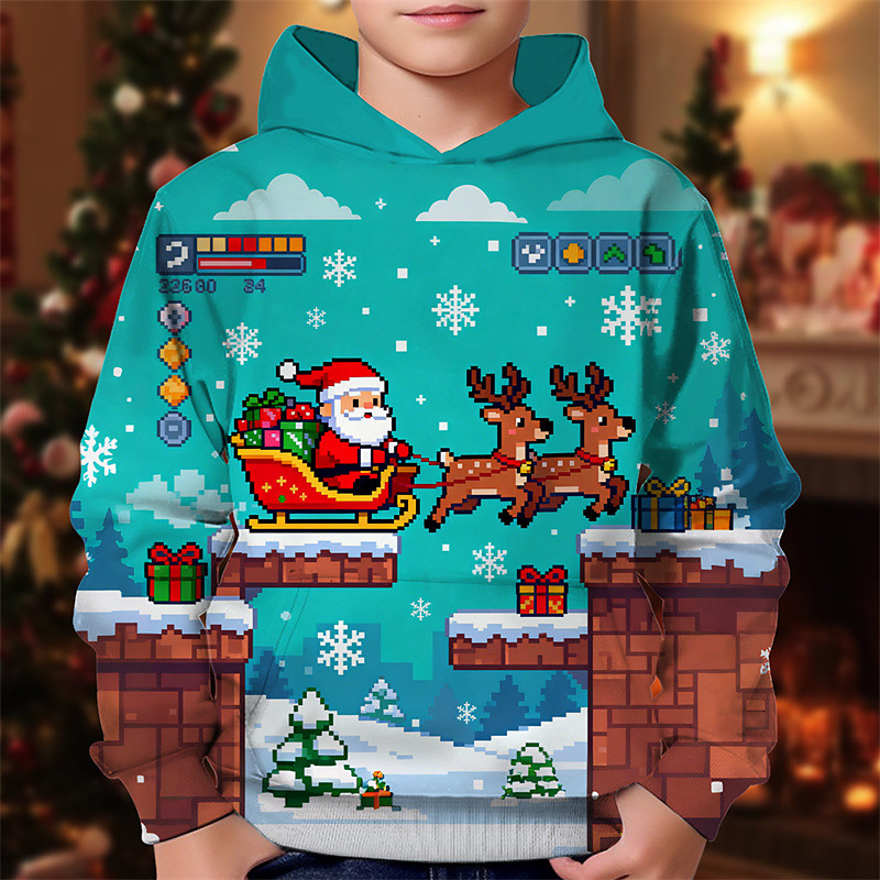 Christmas Boys' 3D Graphic Santa Claus Elk Hoodie Long Sleeve Spring Fall Fashion Streetwear Kids 4-12 Years Hooded Outdoor Casual Daily Regular Fit