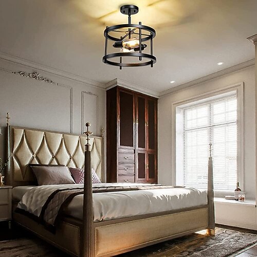 plafoniera industriale rustica a 2 luci da semi-incasso lampada da soffitto nera opaca rotonda per isola cucina sala da pranzo camera da letto fattoria foyer corridoio porta d'ingresso 110-240 v