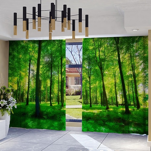 2 tende stampate con paesaggio di piante della foresta e sole, tende decorative per la casa in stile moderno con sacchetto per asta, adatte per cucina, caffetteria, soggiorno, balcone, giardino