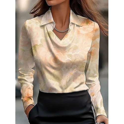 Per donna Camicia Floreale Grafico Elegante Casual Manica Lunga Scollo a Cascata Top Regolari Lavoro Abbigliamento da sera Quotidiano Arricciato Drappeggiato Giallo Verde smeraldo Verde Beige Estate