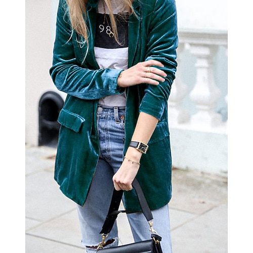 Per donna Blazer Blazer di velluto Confortevole Tasca Moda Semplice Feste Festa / Sera Regolare Collo ripiegato Vestibilità regolare Manica Lunga Capispalla Blu Nero Vino Autunno Inverno