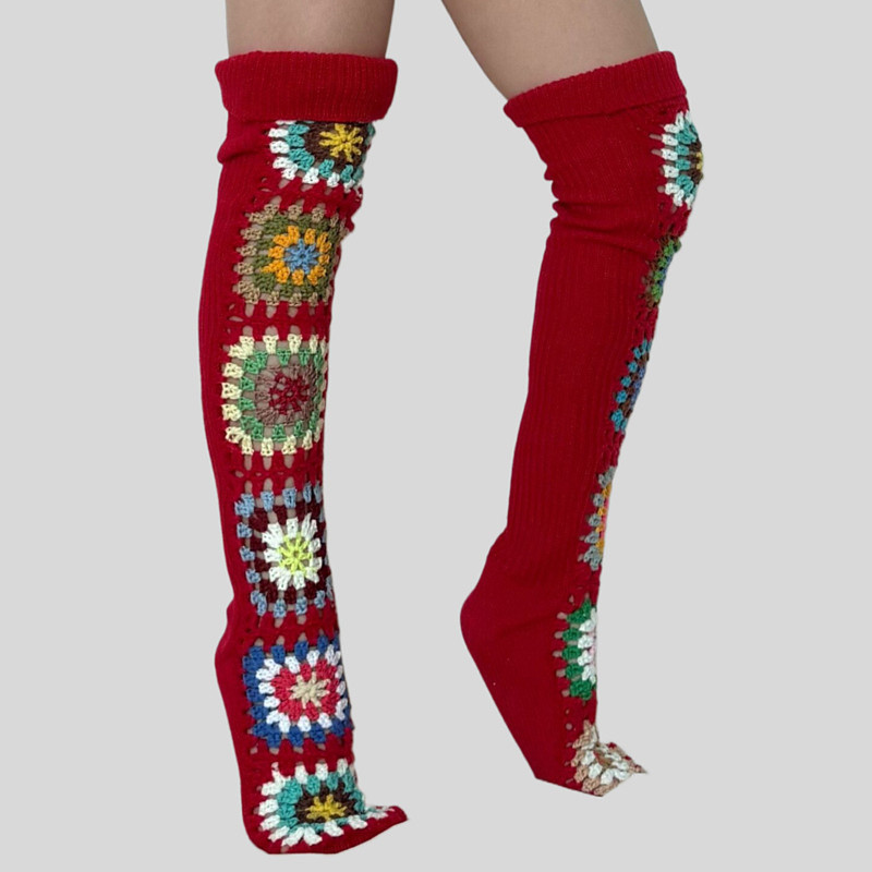 Women's Knee High Socks Stockings Outdoor Holiday Flower Polyester Basic Casual Elastic Warm 1 Pair