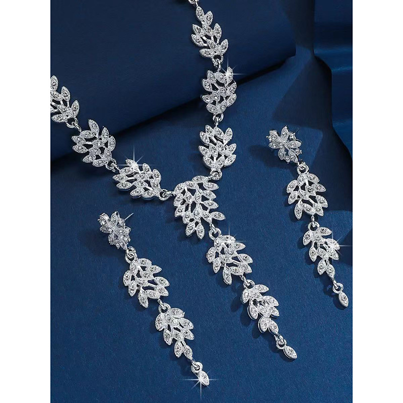 Women's Gold Rhinestone Leaf Necklace and Earring Set - Elegant Sparkly Jewelry for Party and Evening Occasions