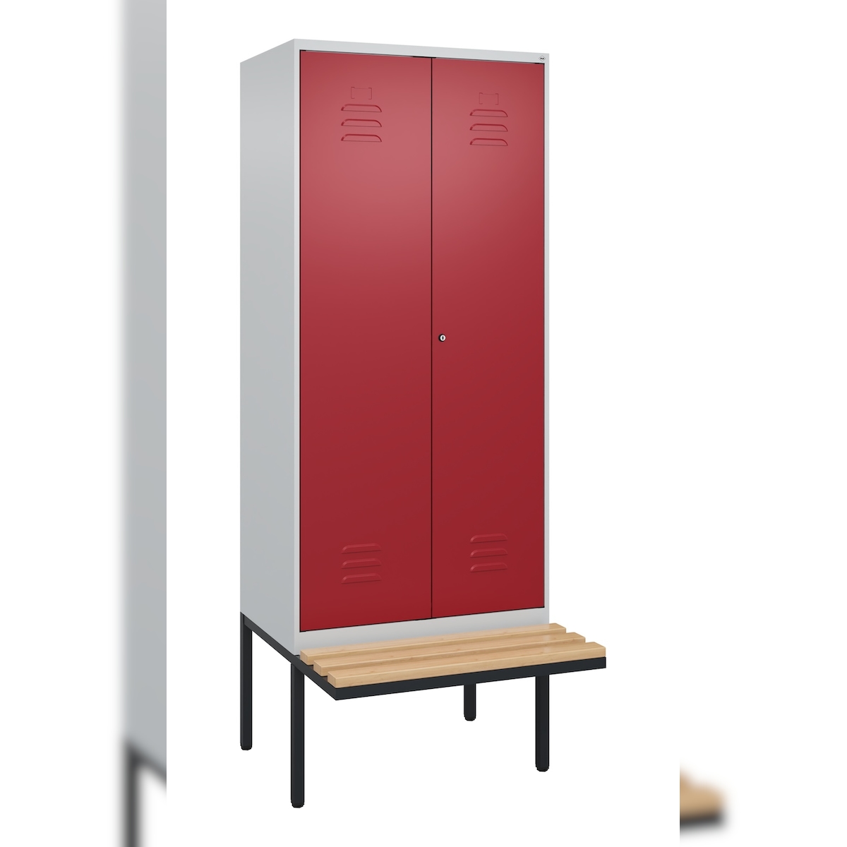 C+P Doppel-Spind Classic PLUS, schwebender Sitzbank aus Buche 2 Abteile, HxBxT 212x80x82cm, Zylinderschloss, Hellgrau/Rubinrot von PROREGAL
