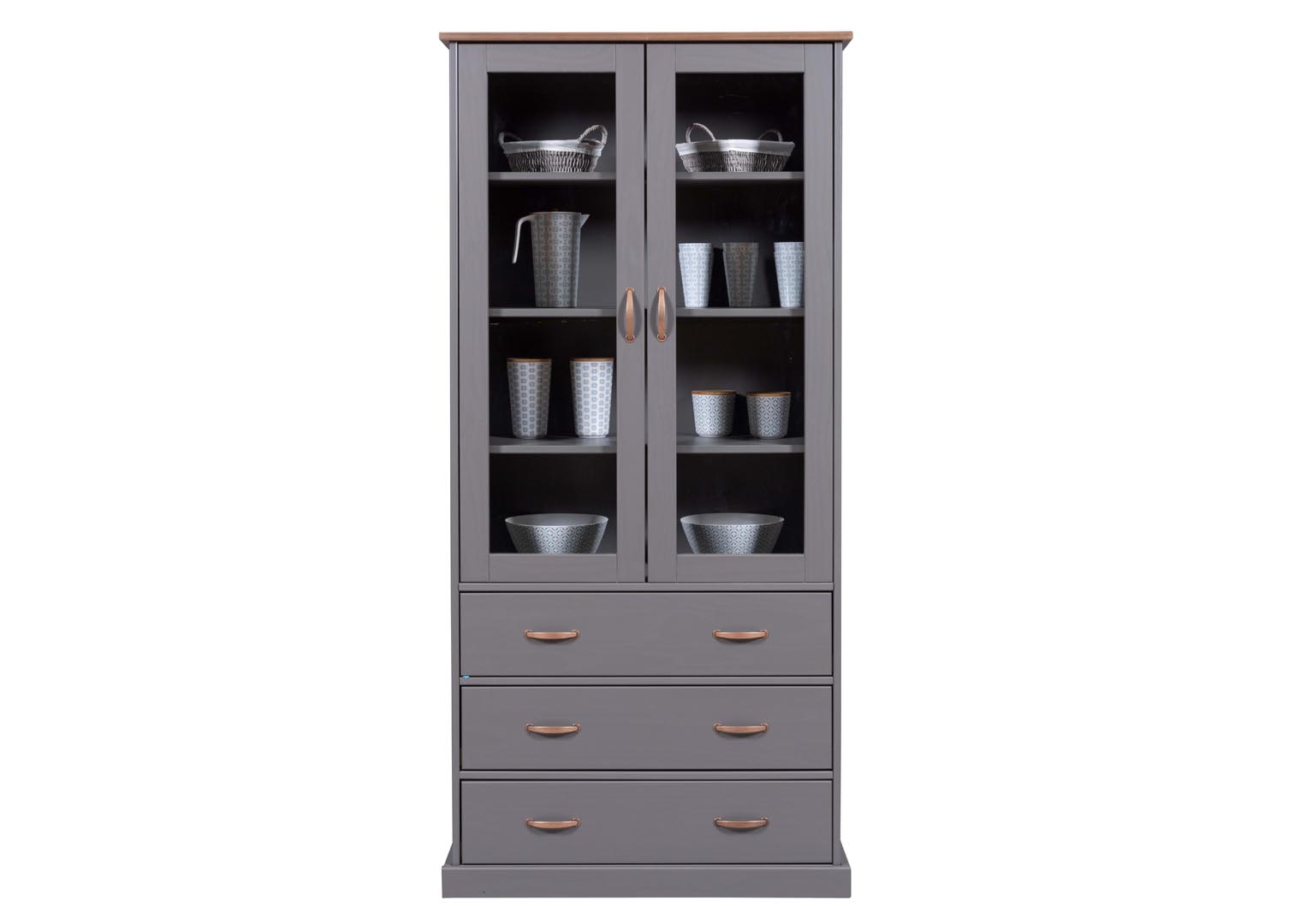 Luzerna Vitrinenschrank 2 Türen, 3 Schubladen grau.