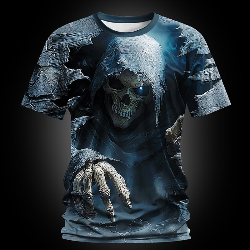 Halloween Men's Optical Illusion Zombies 3D T Shirt Short Sleeve T shirt 3D Print Crew Neck Shirt Exaggerated Designer Horror Party Street Holiday Blue Purple Green Summer Spring All Seasons Clothing
